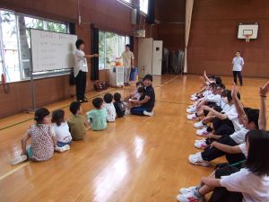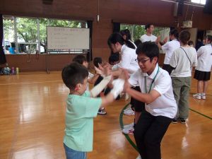 9月18日(木)、7年生が京都府立聾学校舞鶴分校を訪問しました。初めに舞鶴分校の歴史や学校概要、聴覚障害についてのお話を聞いた後、幼児・児童の皆さんと交流を行いました。中学生が事前に考えてきた遊びや、手話を交えた「にじ」を歌唱するなど、楽しく交流することができました。先週の人権学習での学びを、体験を通してさらに深めることができました。