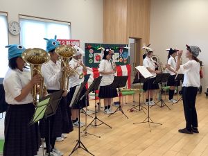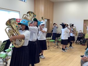 9月20日(土)、音楽部が「ぐるーぷほーむ 森の家」で演奏会を行いました。夏休みから練習してきた成果を存分に発揮し、「上を向いて歩こう」や「笑点のテーマ」「少年時代」などを演奏しました。入所者の皆さんとの交流の時間もあり、楽しいひとときを過ごすことができました。