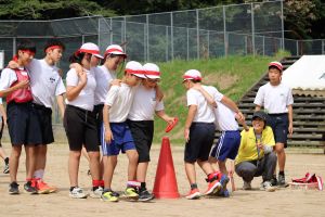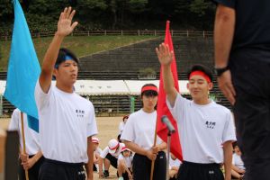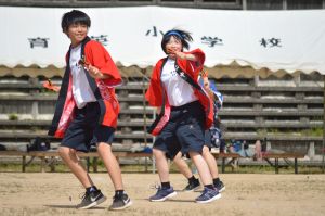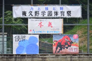 9月27日(土)爽やかな天候のもと、第13回夜久野学園体育祭を実施しました。「本気 ~全力で競い合い 楽しめる体育祭~」のスローガンにふさわしく、競技に、演技に、応援に、係活動に、誰もが「本気」で取り組む体育祭となりました。赤組と青組それぞれに、全力で力を発揮し合う姿が素晴らしかったです。午後には「3館ふれあい公民館まつり」と「PTAオータムフェスティバル」が行われ、楽しい時間を過ごしました。