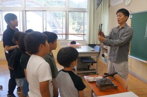 10月7日(火)、NPO法人丹波漆の山内耕祐様を講師にお迎えし、3年生が総合的な学習で「漆掻き」について学習しました。1シーズンにつき1本の木から4日ごとに25回に分けて漆を掻ききること、1本の木から約200gの漆がとれることなど、普段使用されている道具も見せていただきながら教えていただきました。来週は実際に漆掻きの見学や漆塗りの体験をして、今日の学習を深めます。今から楽しみです。
