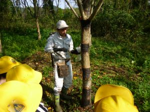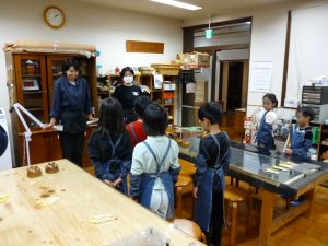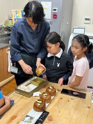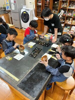10月14日(月)、3年生が漆掻きの見学と絵付け体験をしました。午前中は、NPO丹波漆の山内さんに漆掻きの様子を見せていただきました。先日お話をしていただいたことを実際に見ることで、学習を深めることができました。原っぱ広場で楽しくお弁当を食べた後は、「やくの木と漆の館」で絵付け体験をしました。丁寧に教えていただきながら、好きな絵柄でオリジナルのお椀ができました。
