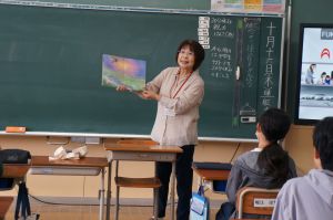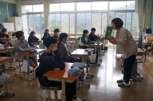 10月16日(木)、結クラブの皆様にお世話になり、読み聞かせをしていただきました。6年生に読んでいただいたのは、夜久野町出身の絵本作家 まつざきさやかさんの「生きているということ」という絵本でした。当たり前だと思っていたことに、それでいいのか、自分はどうなりたいのかと、自分を見つめ直し、「生きる」ということについて考えさせてくれるお話でした。夜久野の先輩の素敵な絵本に出会え、嬉しい朝のひとときでした。