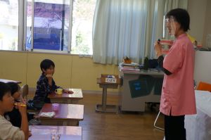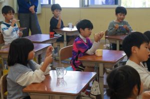 10月23日(木)、歯科衛生士の岡田様を講師としてお迎えし、1、2年生合同で歯みがきについて学習をしました。実際に歯ブラシを使って、正しい歯のみがき方をわかりやすく教えていただきました。「①甘いものをたくさん食べすぎない。②だらだら食べない。③寝る前に必ず歯をみがく。」をしっかり守り、歯を大切にしてほしいです。