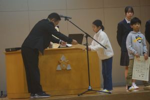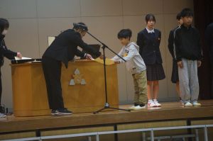 学園日記11月11日(火)朝、PTA生活安全委員さんや主任児童委員さんにもお世話になり、あいさつ運動を実施しました。気持ちのよいあいさつでスタートすることができました。また、今日は全校朝礼を行いました。校長先生からは、全日本学校歯科保健優良校で夜久野中学校が奨励賞を受賞した嬉しい報告と、よりよい人間関係を築く相手への「ありがとう」の気持ちを大切に、2学期後半もがんばっていこうというお話がありました。その後伝達表彰を行い、全校で活躍を讃えました。