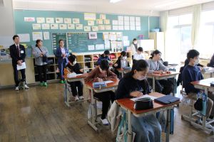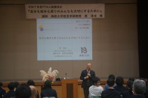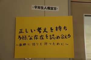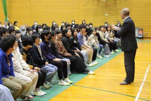 11月21日(金)5校時に、小学校は後期人権学習、中学校は教科(人権学習参観は9月に実施)の授業参観を実施しました。多くの皆様に参観していただき、緊張しながらもしっかりと考え、仲間と意見を交わす姿が見られました。6校時は、講師に佛教大学の原清治教授をお迎えし、人権講演会を行いました。『自分も相手も周りもみんなも大切にするために』という演題で、5~9年生と保護者や地域の皆様にもご参加いただきお話を聞きました。終始明るいトーンでのお話に、子どもたちもぐいぐい引き込まれていきました。スマホの中の限られた人間関係だけでは見えにくくなる、相手の気持ちを想像したり理解したりする気持ちの大切さなどを、夜久野の子どもたちの良さを上手に引き出しながら話してくださいました。今日のお話をこれからの生活につなげ、自分も相手も夜久野学園のみんなが大切にされる、そんな関係を築いてほしいと思います。