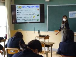 12月2日(火)、惇明小学校栄養教諭の上田先生に来ていただき、2・4・7年生で食に関する指導を行いました。2年生は「3つの食べ物グループについて知ろう」、4年生は「大豆について知ろう!」、7年生は「成長期の食生活」というテーマで指導していただきました。栄養素の働きや望ましい食生活について理解をし、好き嫌いせず何でも食べて元気に過ごしてほしいです。