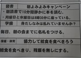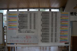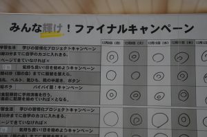 2学期をしっかりと締めくくり、3学期をよりよく始めることができるように、小中合同一斉キャンペーンを行いました。今、その結果が玄関前に掲示されています。「朝よみよみキャンペーン」「協力して給食を食べきろう」「学びの習慣化プロジェクト」「バイバイ菌!キャンペーン」など、小中の委員会ごとに目標を設定して行いました。達成できた◎の数によって金・銀・銅の賞が設けられ、全校部門で金賞、学級部門では5年生が見事金賞を獲得しました。声をかけ合い取り組んだ成果や、各学級で行った振り返りをぜひ3学期の活動に活かしてほしいと思います。