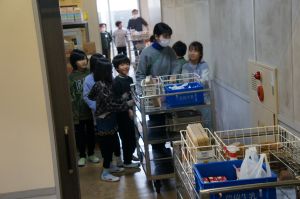 学園日記12月23日(火)は2学期最後の給食でした。大好きなカレーやチョコレートケーキなどを美味しくいただきました。食べ終わった後は、カートを返却しに来た給食当番や学級全員で、いつも給食の準備をしてくれている用務員さんに「ありがとうございました!」の感謝の気持ちを伝えていました。その後の大掃除も協力してがんばりました。明日の終業式を迎える準備はバッチリです。