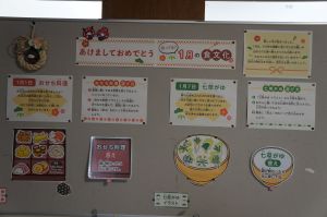学園日記3学期が始まって一週間、校舎の中には1月らしい掲示物が飾られています。保健室前には、おせち料理や七草がゆなどの1月の食文化について、クイズ形式で学べるもの。小さな図書室前には、折り紙の十二支(とてもかわいい!)に囲まれた、味わいある書や馬の字の入ったことわざが掲示されています。養護の先生、学校司書の先生による掲示物から、新しい年の雰囲気が感じられ、思わず立ち止まって見てしまいます。