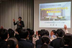 1月29日(木)、NIT情報技術推進ネットワーク(株)の篠原嘉一様をお迎えし、5~9年生と保護者対象にネットトラブルストップ講座を行いました。動画アプリが子どもの脳に与える影響や、情報通信機器の正しい使い方など、知っておかなければならないことをたくさん教えていただきました。今後ますます社会にネットが広がっていく中で、安心・安全に生活するために、子どもも大人も正しい知識と判断のもと使いこなすことが大切です。