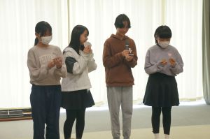 1月23日~29日の福知山市学校給食週間では、これまでに万博が行われた都道府県(沖縄県・茨城県・愛知県・大阪府)にちなんだ献立を楽しみました。最終日の今日は、「EARTH FOODS25」(日本が培った食材、食品、食の知恵・技術の中から選定された25種)の中の食材を使った献立をおいしくいただきました。また学校では、先日に引き続いて1・3・5年生が食育かるたに挑戦しました。6年生の保健体育委員が進行し、楽しい時間を過ごしました。