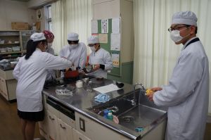 7年生は調理実習をしていました。「寒い冬にあったかい汁物を作ろう」の課題のもと、クリームシチューやポトフを作っていました。調理しながら洗い物も終わらせるなど、手際よく進めていたのはさすがです。
