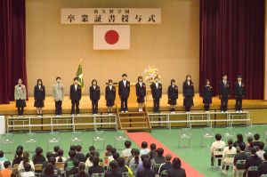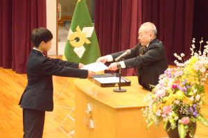 3月19日(木)、6年生の卒業証書授与式を挙行しました。14名の卒業生は、4月に入学する中学校の制服や標準服を身にまとい、式に臨みました。堂々と入場、元気のよい歌声で始まり、凛とした雰囲気の中で式が進行していきました。式の最後、一人一人が精一杯の声で伝えた「明日への言葉」では、これからの強い決意が感じられ、感動的な締めくくりとなりました。何事にも真面目に取り組み、優しく、一生懸命だった卒業生の皆さん、小学校で付けた力を生かし、充実した中学校生活を過ごしてください。