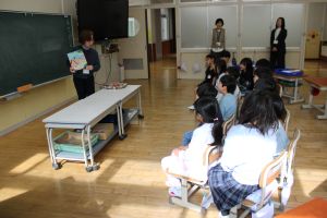 4月17日(金)朝読書の時間、1~3年生を対象に、読み聞かせボランティアさんによる読み聞かせをおこないました。控え室までお迎えに行き、「よろしくお願いします!」と元気にあいさつをしました。