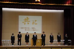 児童生徒会スローガン「共に~全員で助け合い、挑戦し、夢に向かって翔ばたく~」のもと、全校児童生徒が共に支え合い、それぞれの夢の実現に向けて邁進できる学園生活をつくっていきます。
