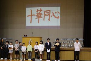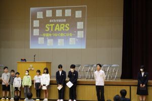 学園日記4月28日(火)3校時、全校で児童生徒集会を行いました。各学級の代表者が、そこに込められた思いを説明しながら、各学級の目標を堂々と発表しました。