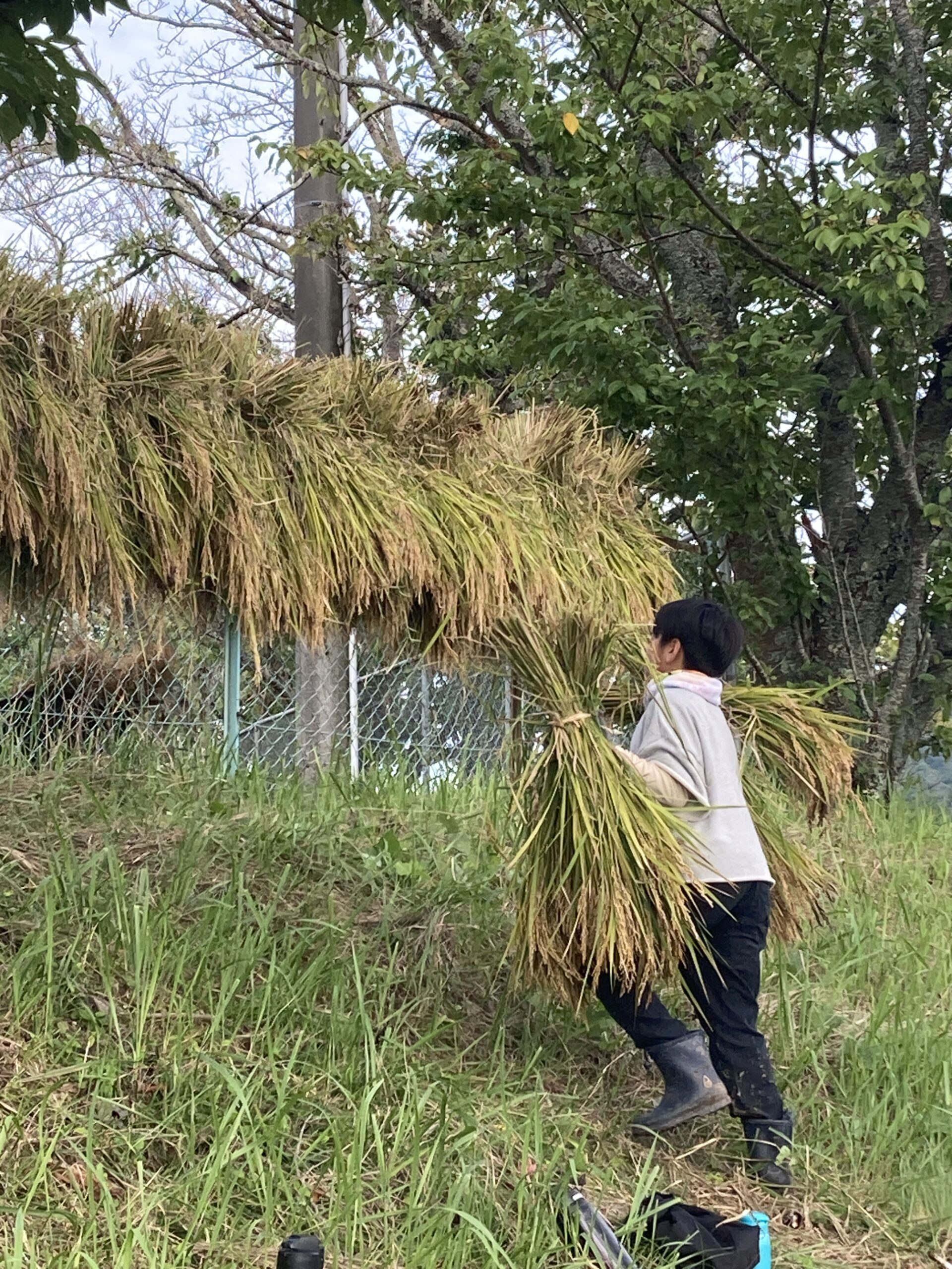 約1週間学校のフェンスで干し、そのあと脱穀の作業を行います。引き続き山崎さんに力を貸していただき、みんなでおいしいお米を作ります。