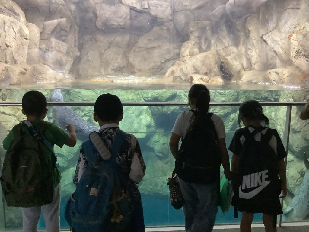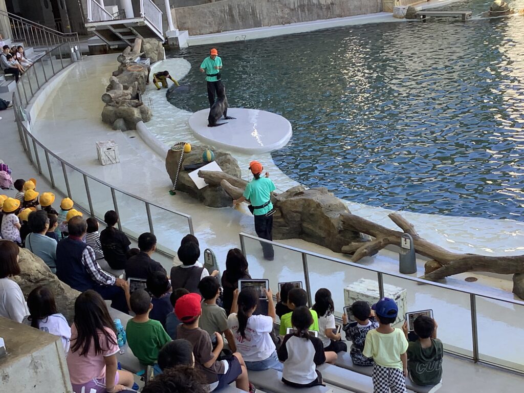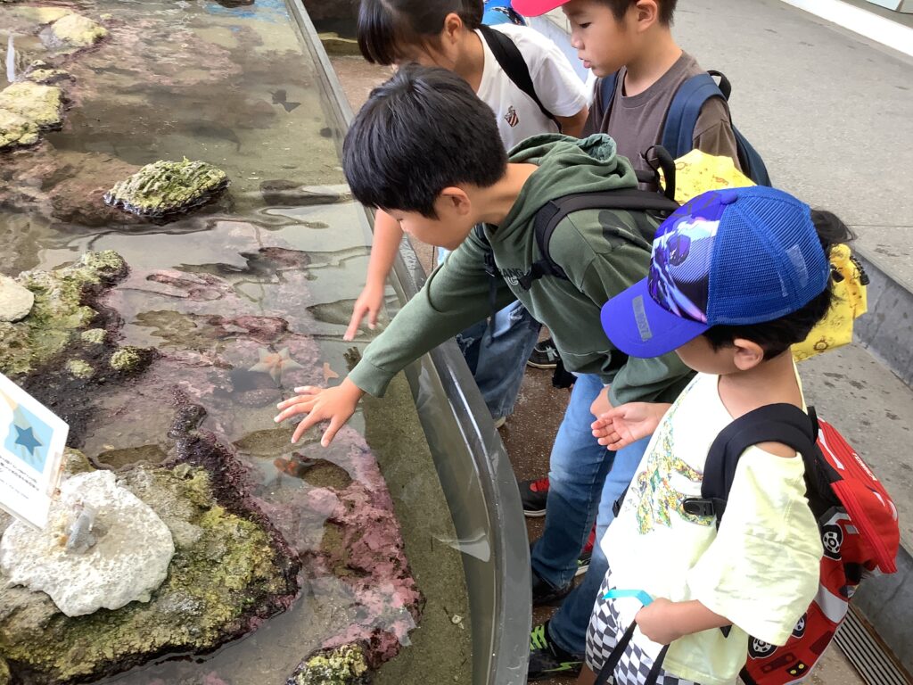 3年生リーダーを中心に、1・2・3年グループで園内を見学しました。様々な海の生き物にみんなの目がキラキラと輝いていました。イルカショーではイルカの指示を体験させてもらう子どももいて、みんなで楽しみながら海の生き物について学ぶことができました。