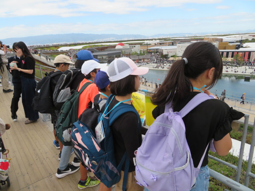 高学年が大阪・関西万博へ行きました。閉幕目前の日だったので、たくさんの来場者がおられました。その中をグループで相談しながらパビリオン巡りをしました。スタンプを集めるグループ、大屋根リングを1周するグループ、疲れた人たちは座って見られるブースでお笑いのライブを見学するなど、時間いっぱい楽しみながら学ぶことができました。長時間の移動の最中は、バスでのレクレーションをしたり、DVDを鑑賞したり、楽しくおやつを食べたりしながら過ごすことができました。
