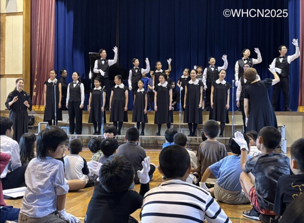 今回の音楽会では「希望の歌」と「にじふらい」を聞かせていただき、日本ユニセフ協会とこども家庭庁が共催している「こどものけんりプロジェクト」のテーマソング「“こえ”のうた」と「花は咲く」についてはサイン隊の手歌(しゅか)を教えていただき、一緒にパフォーマンスしました。