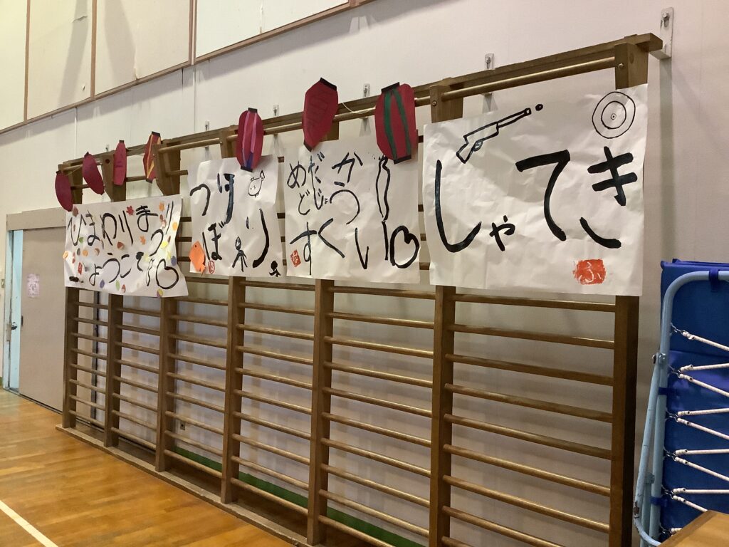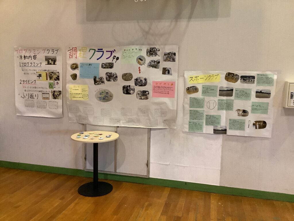 また、体育館にはクラブ活動の活動内容の紹介や教室での学習物の掲示もしました。