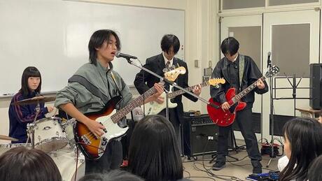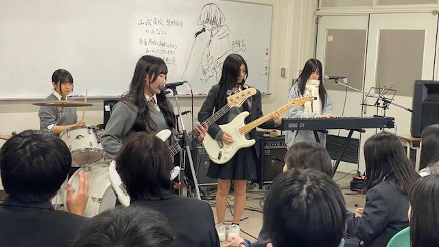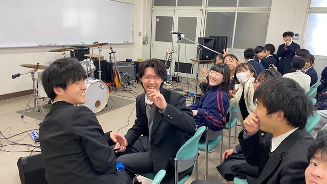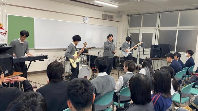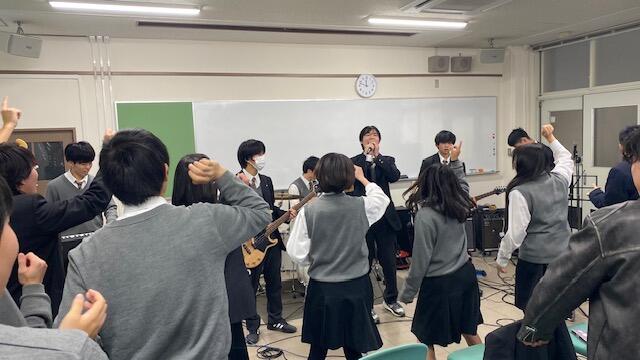 12/13(Sat)に、朱雀高校にて3校合同LIVEを行いました。日頃の練習の成果を発表する良い機会になり、他校の生徒から大いに刺激を受けました。その日ラストのバンド演奏では、観客総立ちで盛り上がり、思い思いに拳を突き上げていました。終了後にはお互いに連絡先を交換し、メンバー間の交流を深めることができました。