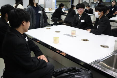 また、実験後には、生命構造化学研究室に所属する大学院生に対し、受験の仕組みや大学生活について質問する姿も見られました。