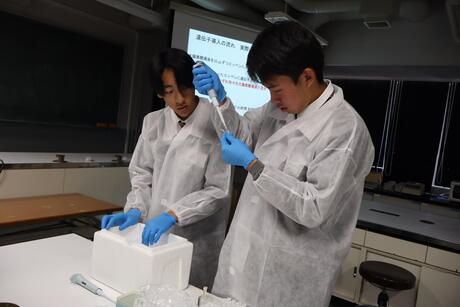 実験では、多くの生徒が初めて扱うマイクロピペットなどの器具に苦戦しながらも、協力して大腸菌への外来遺伝子導入に取り組みました。今回の実験結果は、126日(土)に観察する予定です。自分たちが培養した大腸菌がどのような変化を示すのか、生徒たちは期待を膨らませています。