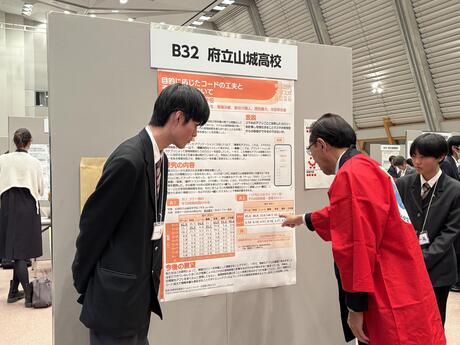 本校からは「AIと感情」、「目的に応じたコードの工夫とその結果について」という題で、探究活動の成果を発表し、京都府の西脇知事、京都市の松井市長をはじめ、多くの方々に発表を聞いていただきました。