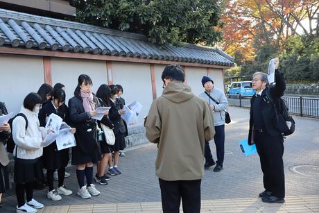 令和7年11月22日(土)、1年生文理総合科の生徒たちは「京都の歴史と『まちづくり』-京都御所・鴨川とその周辺-」をテーマにフィールドワークを行いました。
