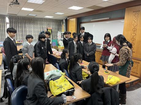 その後の交流プログラムでは、現地の生徒による職業体験に参加しました。高齢者向けアロマケア、航空客室サービス体験、ゴマ蛋巻づくり、ペット介護・萌寵扭扭体験、アートクラフト制作など、多彩な内容に触れ、楽しみながら学ぶことができました。