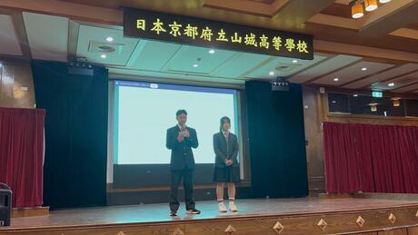 私立喬治高級工商職業学校では、歓迎セレモニーが行われ、本校の生徒も英語や台湾語を交えたスピーチを堂々と発表しました。