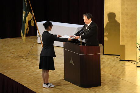 校長式辞では、卒業生へのお祝いの言葉、ワールドワイドパイオニアの第1歩を刻んでくれたことの感謝、「情熱をもって学び続け、豊かな人生を歩んでほしい」という激励の言葉が贈られました。