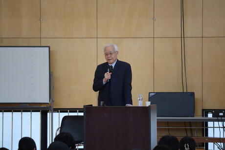 今年度は、元京都府立大学学長 渡辺 信一郎 様(第19回(昭和42年3月)卒業)にお越しいただき、『孔子の一生』と題してお話いただきました。孔子の生涯とともに、儒学の根幹を御講演いただきました。