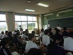 9月22日、本校にて、京丹後市社会福祉協議会様、京丹後市地域包括支援センターあみの様、満寿園様にご協力いただき、標記の福祉体験を実施しました。この事業は高齢者福祉に関する学習と体験を通し、社会に目を向けるとともに、自分が高齢者になったときのことを考え、高齢者の人権について考える機会としています。当日は自分がその立場になった時の疑似体験を通して、声掛けや接し方などについても学びました。