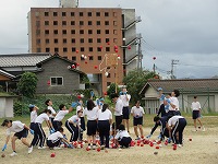 お知らせ10月2日の体育祭に向け、ブロックごとの競技・演技の練習に取り組んでいます。
