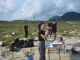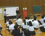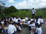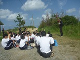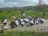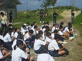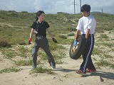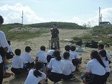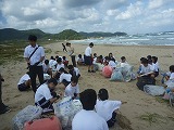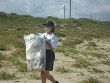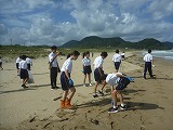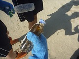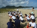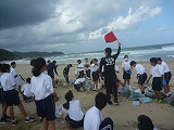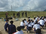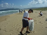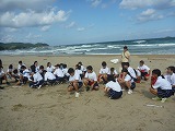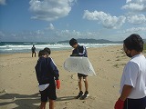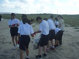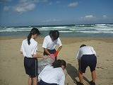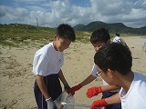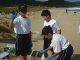 10月6日(月)、久美浜小天橋にて、京丹後市生活環境課の皆様のサポートにより、海岸のゴミ拾い活動を行いました。生活環境課職員様からはごみを拾う時は、どんな種類があるかを考えながら拾っていこうとアドバイスを頂き、約30分程度ゴミ拾いを行いました。タイヤやブイなどの大型ごみからマイクロプラスチックなどの小さなものまで、班で協力しながら拾いました。当日は波が少し高くなっていましたが、さわやかな天候となりました。ゴミ拾いの後は拾ったごみの種類を競うビンゴ大会で、盛り上がりを見せていました。最後に市職員様から環境問題や京丹後市の海岸ごみ事情について詳しく説明をして頂きました。クイズ形式も含まれ、楽しく環境について学びました。「環境を考えることは未来を作ること」という言葉が子どもたちの心にも残っている様子でした。