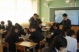 本校では昨年度に引き続き、3年生の技術科において、文部科学省が推進する「義務教育段階における質の高い教育の実現に向けた遠隔教育」を活用し、専門家によるオンライン授業を実施しました。5月からスタートし、年間17時間実施しました。今年度は丹後中学校と合同でオンライン授業を受けました。学校法人 宇都宮海星学園 星の杜中学校・高等学校 技術科教諭、宮城教育大学 非常勤講師 木村 浩之 様 にお世話になりました。授業は本校の技術科担当教員も共に担当しまいます。2月5日(木)、プログラミングの今年度最後の授業は木村先生に宮城県から来校いただき、対面での授業を受けました。社会の課題をテクノロジーで解決するため、①ミッション(解決する課題) ②情報の技術 ③技術的基盤 ④利用シーン をチームでアイディアを出し合ったり調べたりしました。獣害対策や教育問題、日常の生活の便利さや医療問題など子どもたちの自由な発想が飛び交う授業となりました。今まで習ってきた技術を使ってキャラクターやポスターをつくったりするなどの工夫も見られました。木村先生の授業は技術の時間で学んだことが実社会で生かされ、自らで課題を解決できる喜びを体験できる内容でした。1年間お世話になりありがとうございました。