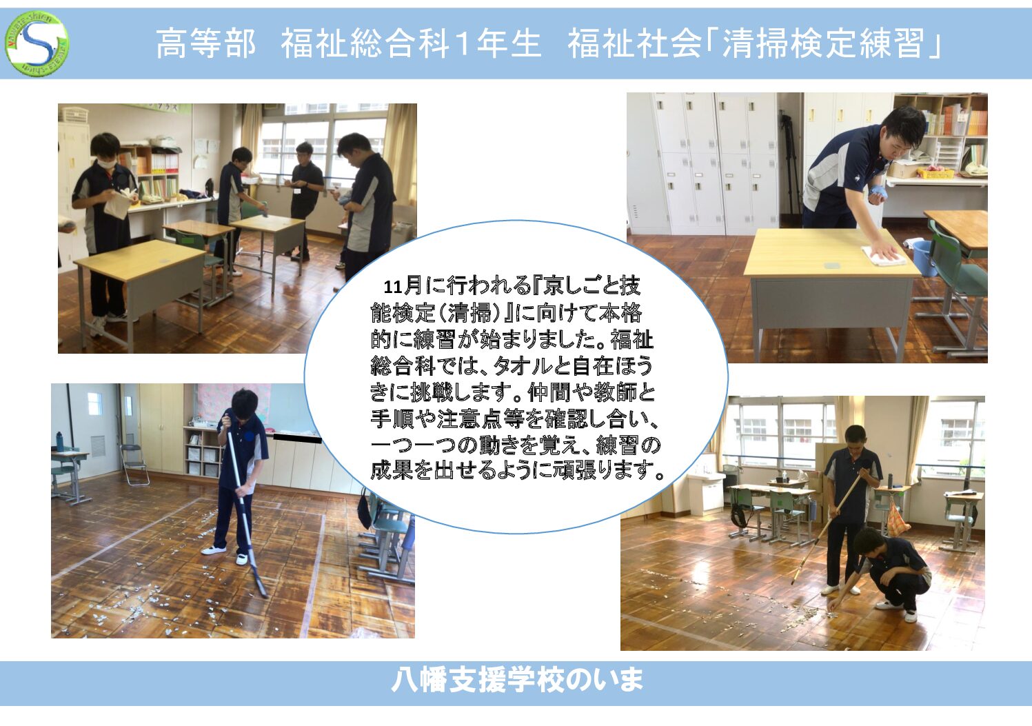 00 新着情報 高等部福祉総合科1年生 福祉社会「清掃検定練習」