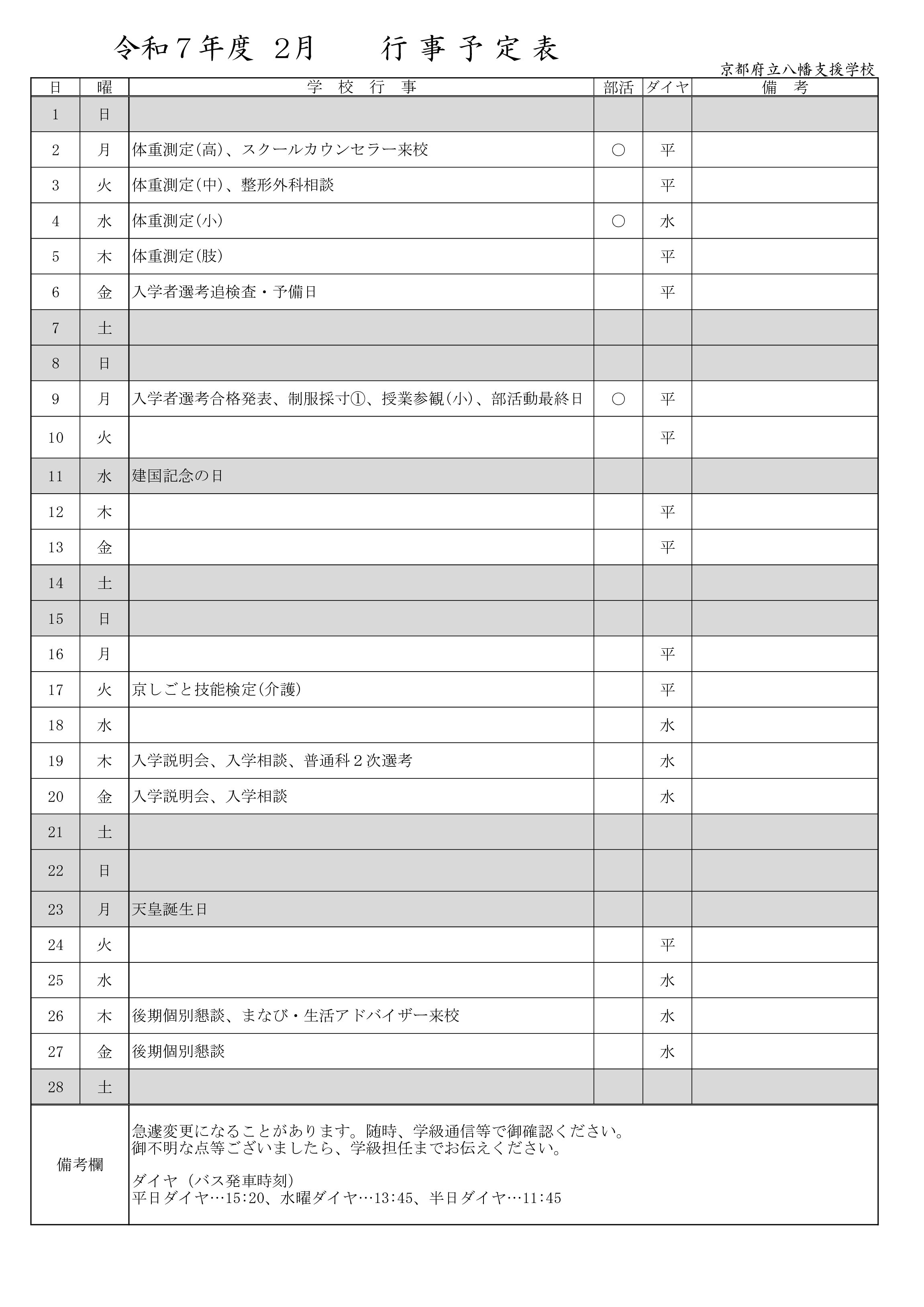 071219 令和7年度2月行事予定(保護者用)ダウンロード