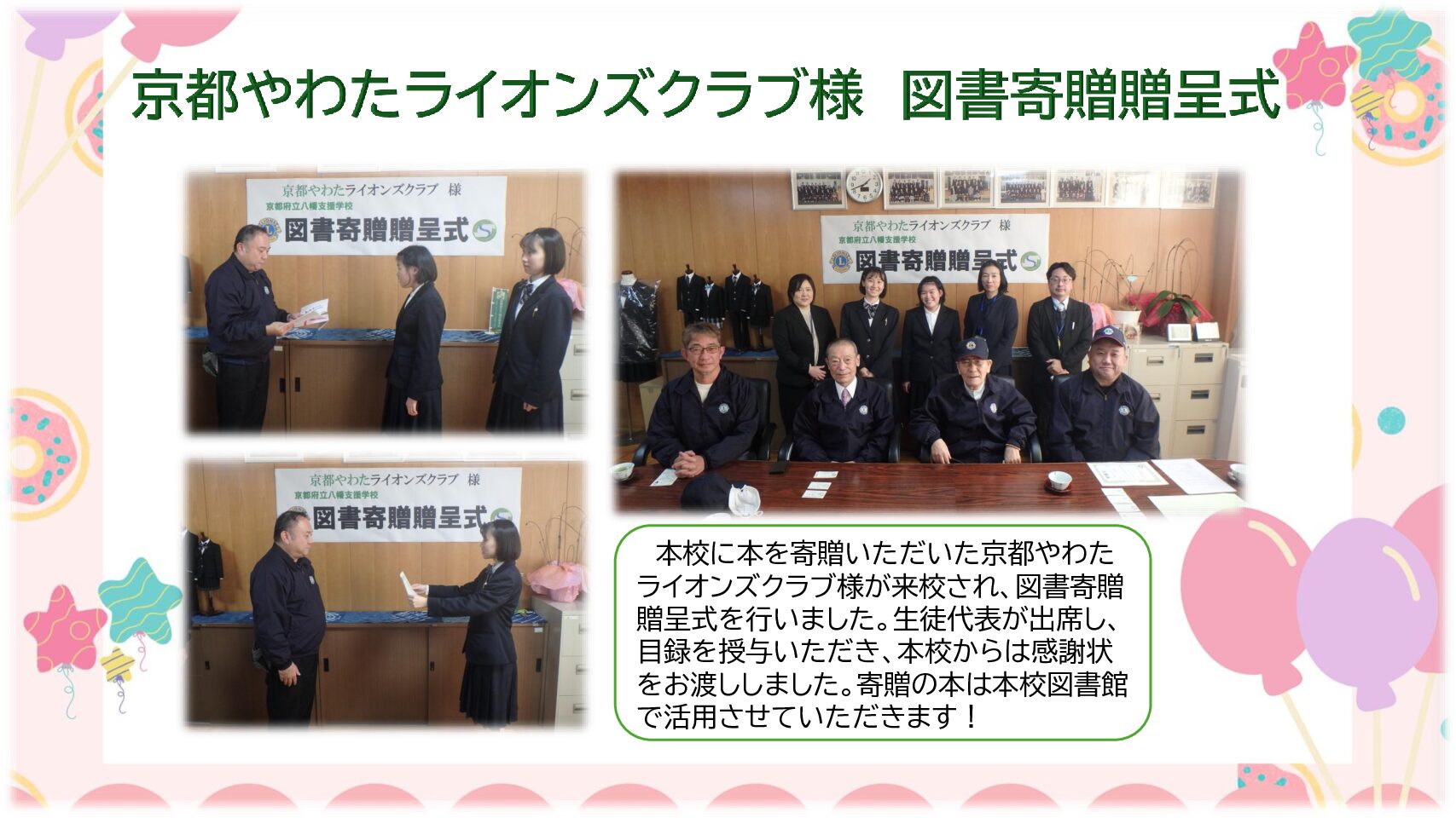 00 新着情報 京都やわたライオンズクラブ様 図書寄贈贈呈式