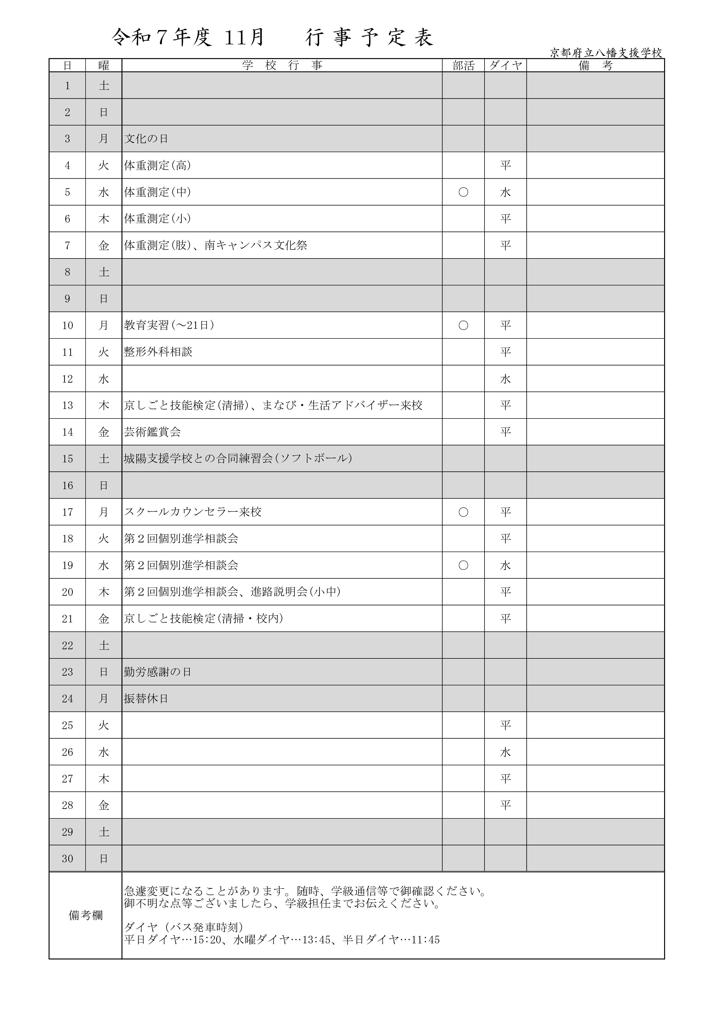 令和7年度 11月行事予定表 00 新着情報 Twitter Facebook はてブ Pocket LINE コピー 2025.09.26 070926 令和7年度11月行事予定(保護者用)ダウンロード Post Views: 74