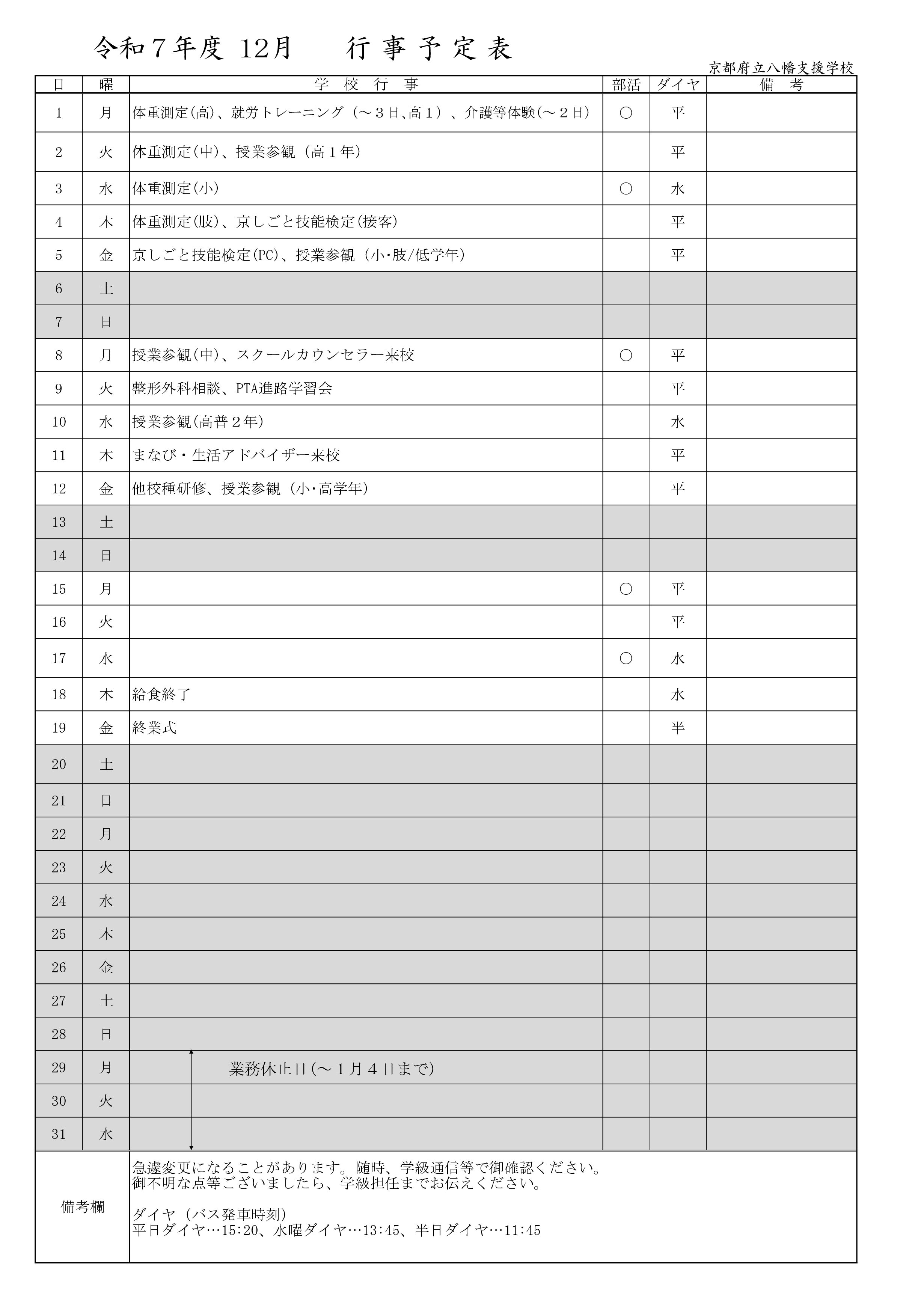 12月行事予定表 00 新着情報 Twitter Facebook はてブ Pocket LINE コピー 2025.11.04 071104 令和7年度12月行事予定(保護者用)ダウンロード Post Views: 26
