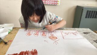 全校児童のイラストがぎゅっと詰まった、心温まる看板がついに完成しました!