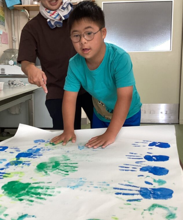 6年生は修学旅行先での楽しみなことを選んだり、役割分担をしたり、買い物学習に取り組んだりと修学旅行当日への期待感を高めています。4・5年生は6年生に向けて「いってらっしゃい」の横断幕を手型やちぎり絵で作成中です。楽しんで行ってきてね! |