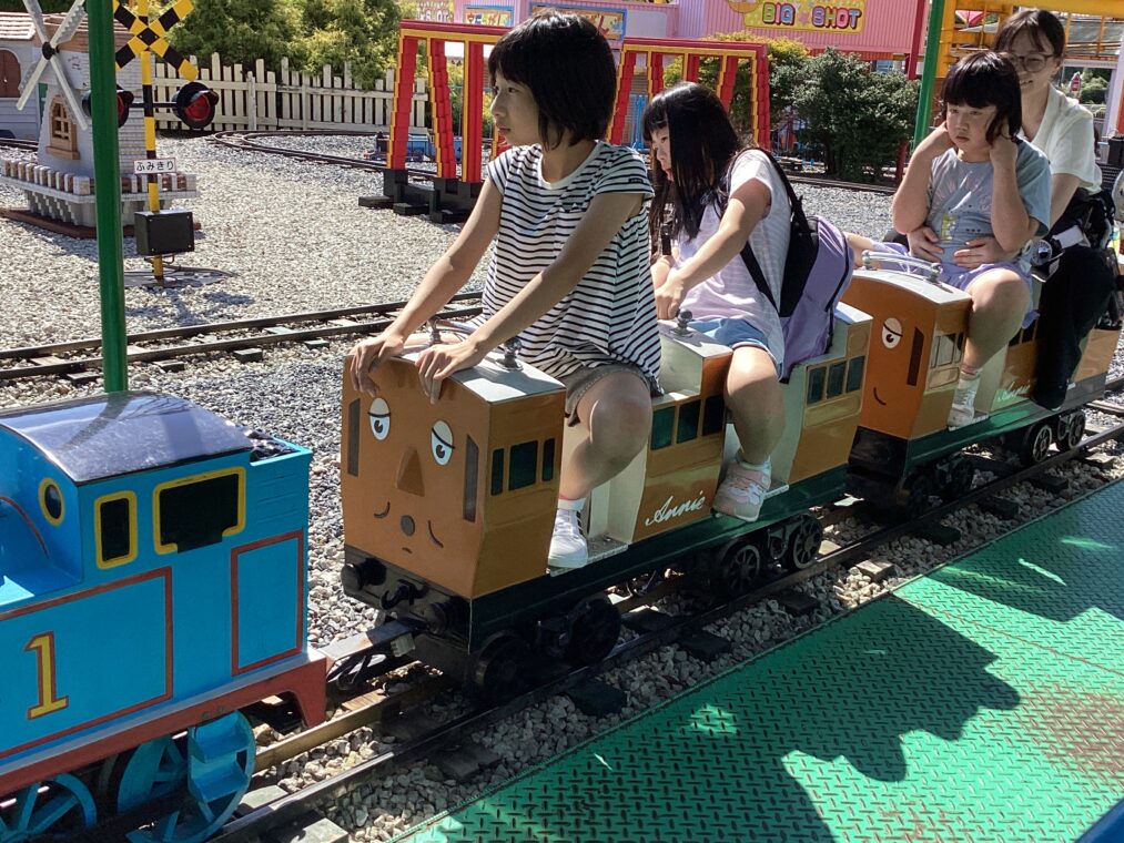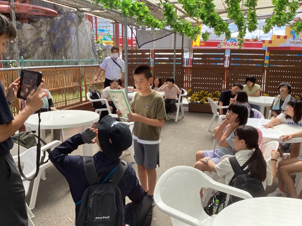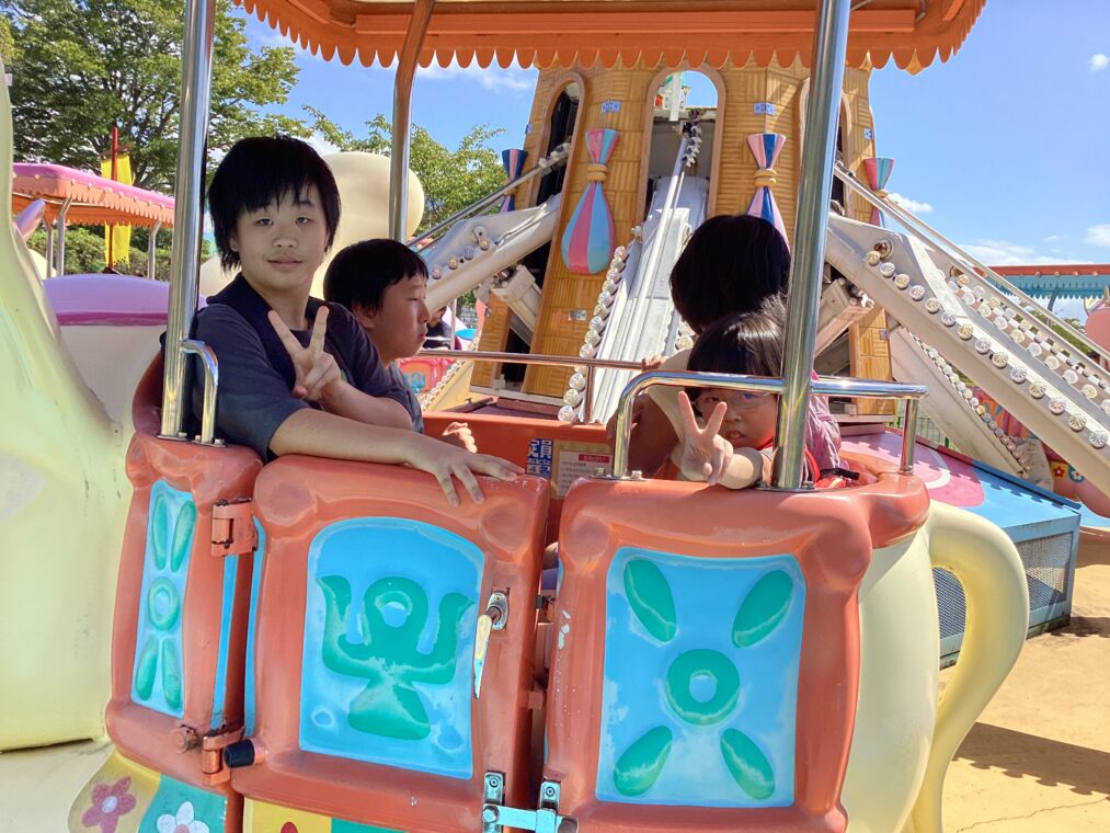天気に恵まれ、気持ちのいい風が吹く気候の中、おもちゃ王国で活動しました。それぞれが楽しみにしていた乗り物を探したり、面白い遊びを見つけたり、いくら時間があっても足りないくらいです。スリルのある乗り物にも友達と一緒に挑戦しました。昼食は前日から「明日の昼ごはんはラーメン!」と楽しみにしている児童もいました。昼食後は学校と繋いで現地リポートです。「学校の皆さん!6年生は全員元気で楽しんでいますよ!」