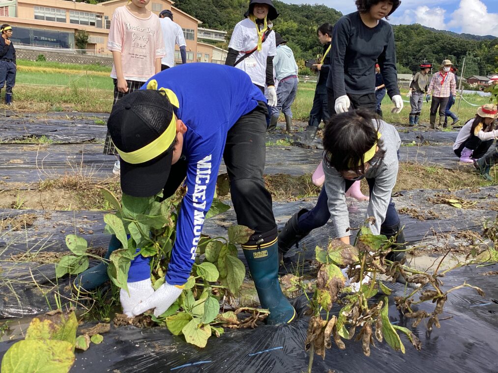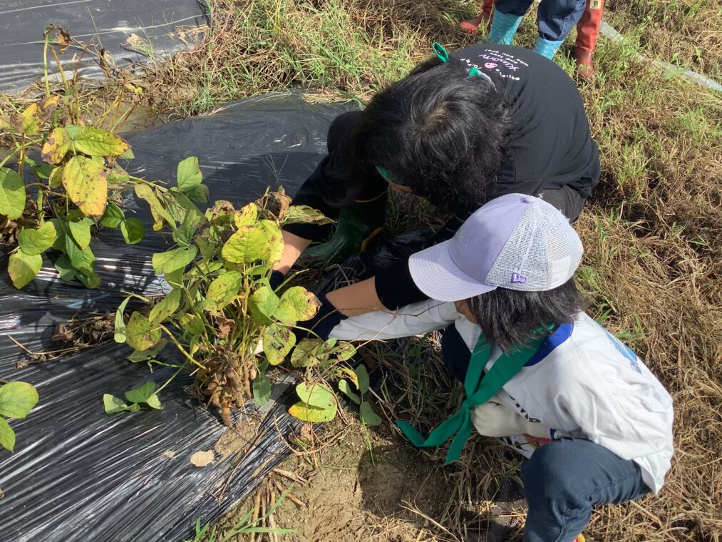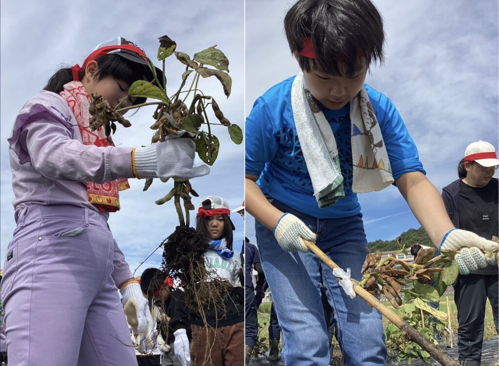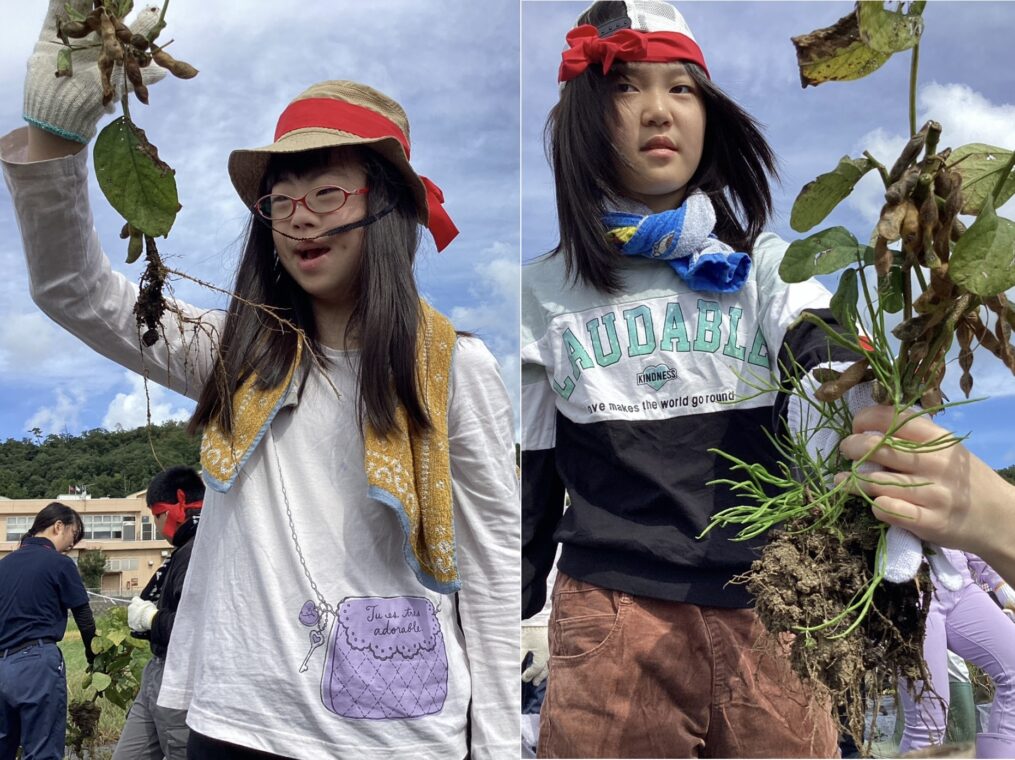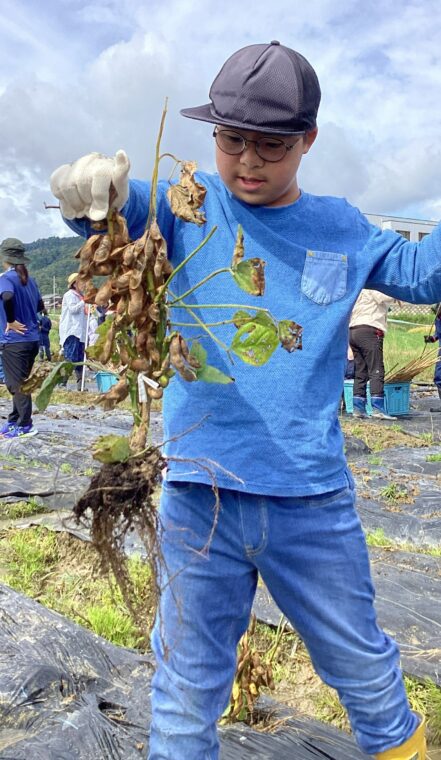 いきいき◇わくわく♡しょうがくぶ♪(高学年)10月9日 小学部 2025.10.09 黒豆収穫 6月に植えた苗が収穫のときを迎え、9月30日(火)、地域の方に株の抜き方を教わりながら全校で黒豆を収穫しました。株を抜く際には「ここにもあるよ。」「一緒にやろう!」と声を掛け合いながら協力して、全身でひき抜くことができました。自分たちが収穫した黒豆を見て、達成感を味わったり、「給食にもでるかな?」と収穫後に期待を膨らませたりしていました。 6組 7組 8組 9組 10組 Post Views: 73