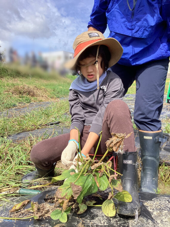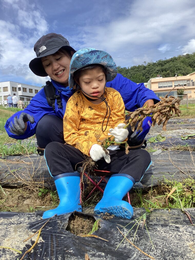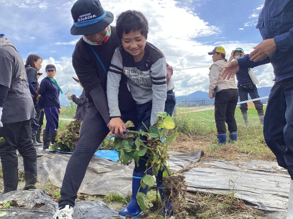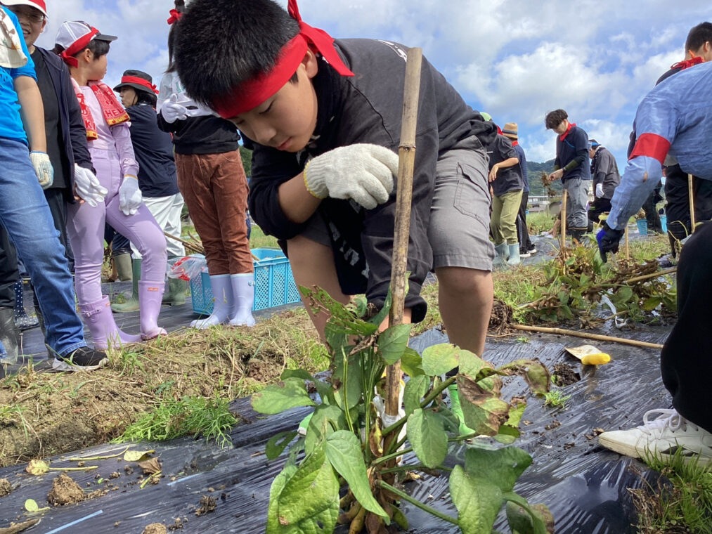 いきいき◇わくわく♡しょうがくぶ♪(高学年)10月9日 小学部 2025.10.09 黒豆収穫 6月に植えた苗が収穫のときを迎え、9月30日(火)、地域の方に株の抜き方を教わりながら全校で黒豆を収穫しました。株を抜く際には「ここにもあるよ。」「一緒にやろう!」と声を掛け合いながら協力して、全身でひき抜くことができました。自分たちが収穫した黒豆を見て、達成感を味わったり、「給食にもでるかな?」と収穫後に期待を膨らませたりしていました。 6組 7組 8組 9組 10組 Post Views: 73