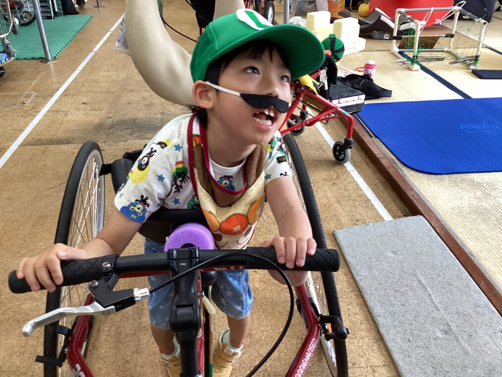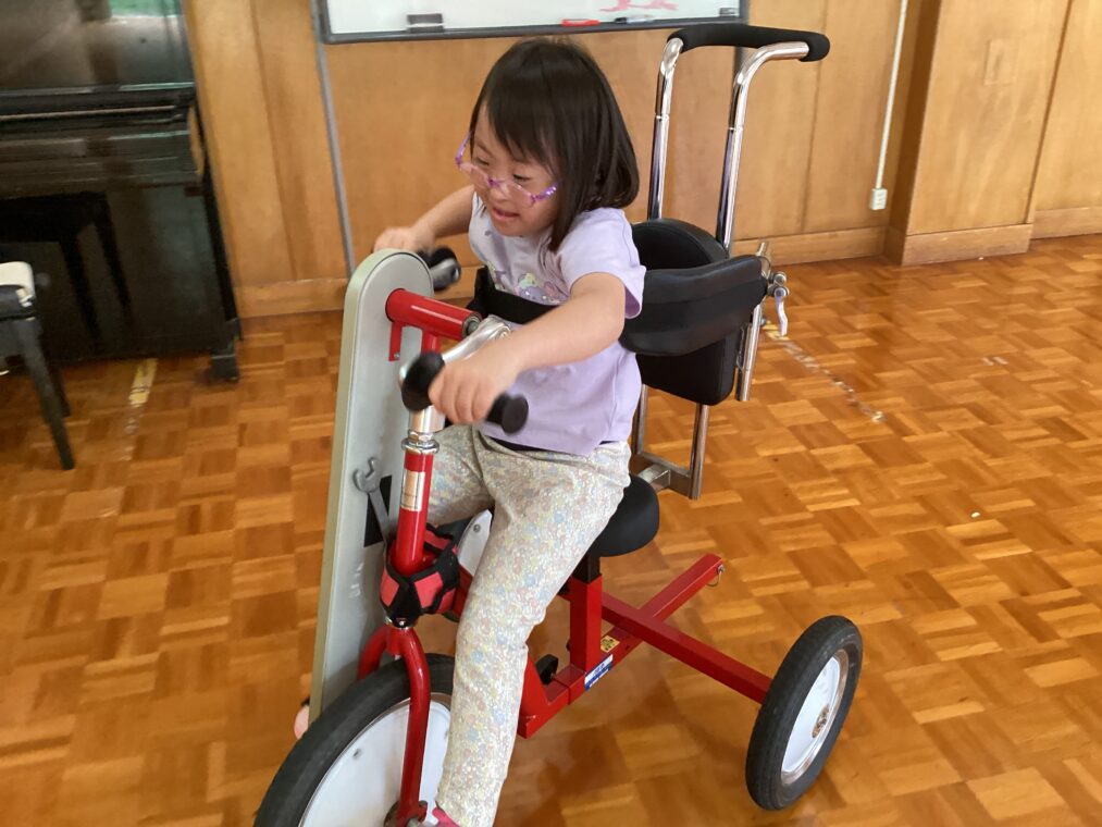 身体を動かす活動が大好きな1組の子ども達。たくさん声が出て、笑顔があふれる時間になっています。「もっとやりたい!」「〇〇に行きたい!」という思いを表情、声、身振り等で指導者に伝えます。 |