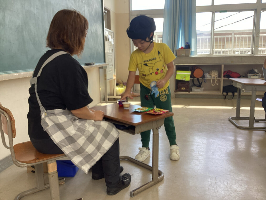 10月から校外学習に向けて買い物練習を始めました。買い物の約束を守りながら、好きなお菓子を選んでお金を支払います。校外学習を楽しみに、しっかり取り組むことができました。 |